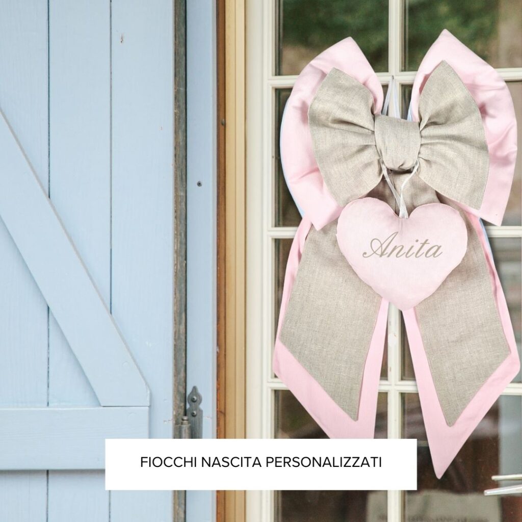 E poi il fiocco nascita, disponibile in tanti modelli e tonalità: con cuori, orsetti o stelline, lo prepariamo per te con il nome del tuo piccolo o una dolce frase di benvenuto.