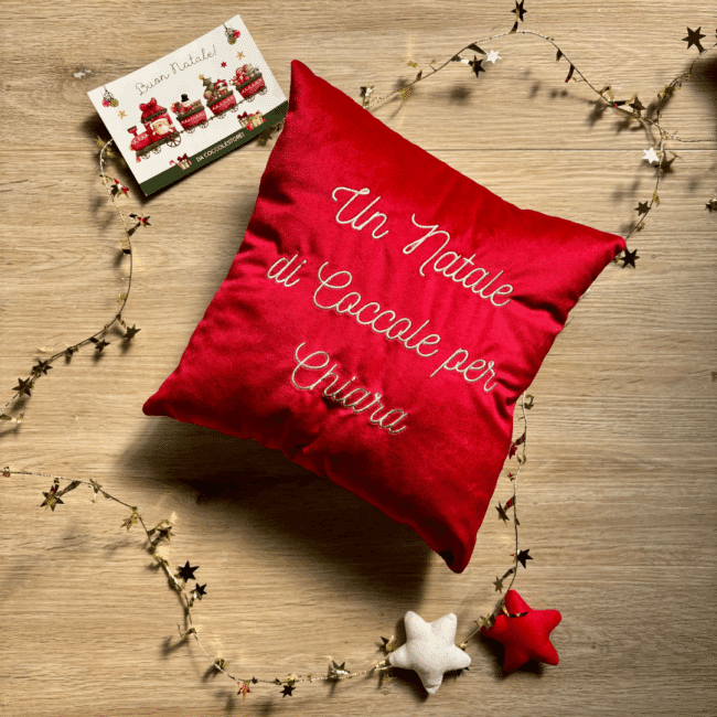 Cuscino Coccola Natalizia con frase personalizzata