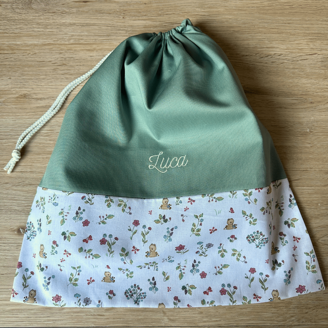 Il Set Asilo Nido “Orsetto nel Bosco” è pensato per accompagnare con dolcezza i primi giorni al nido, un momento speciale ricco di emozioni e nuove scoperte. Realizzato artigianalmente con tessuti italiani di alta qualità, è l’alleato perfetto per mamme e bimbi che iniziano questa nuova avventura.