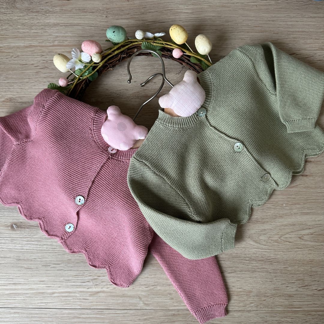 Bolerino in tricot Coccodè. Un capo jolly che va sempre tenuto con te è il bolerino corto in cotone smerlato , romantico, morbido e leggero realizzato in puro cotone  nei toni rosa e verde salvia . Il golfino corto è ideale da abbinare ai graziosissimi abitini e completini di Coccodè che ti proponiamo sul sito, per la primavera estate 2026. La linea 0/24 di Coccodè Firenze è  un marchio Made in Italy sinonimo indiscusso di qualità dei materiali e cura per il particolare. Se vi è piaciuto il completino , nel sito troverete altri capi di questa deliziosa linea. Per completare l’outfit,  sono disponibili anche le nostre bellissime scarpine