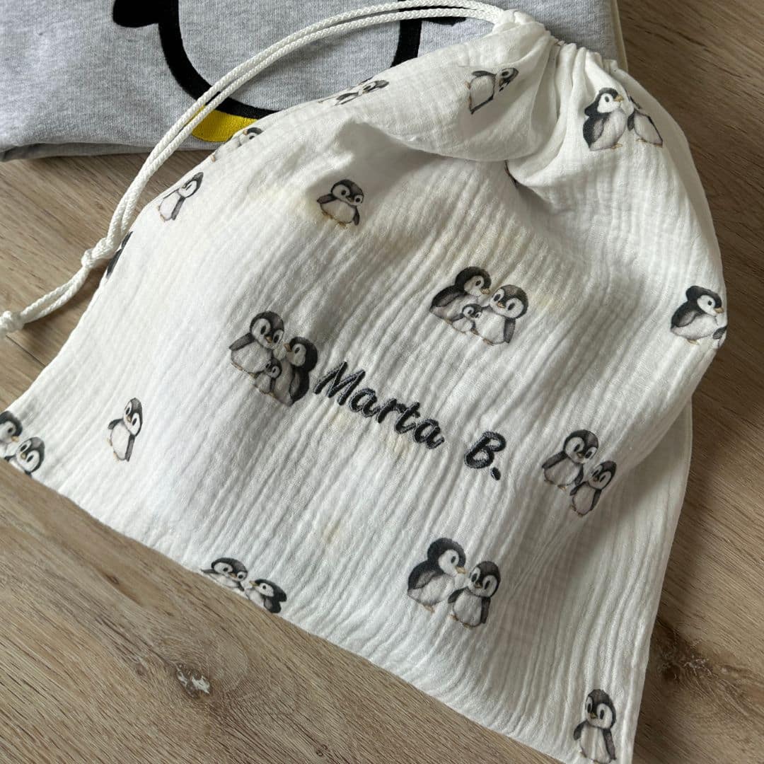 Il Set Asilo “pinguino” è perfetto per iniziare la scuola con stile e comodità: puoi mixare i pezzi che desideri, scegliendo colori e disegni coordinati, con un minimo di 35,00 € avrai personalizzazione e spedizione gratuita.