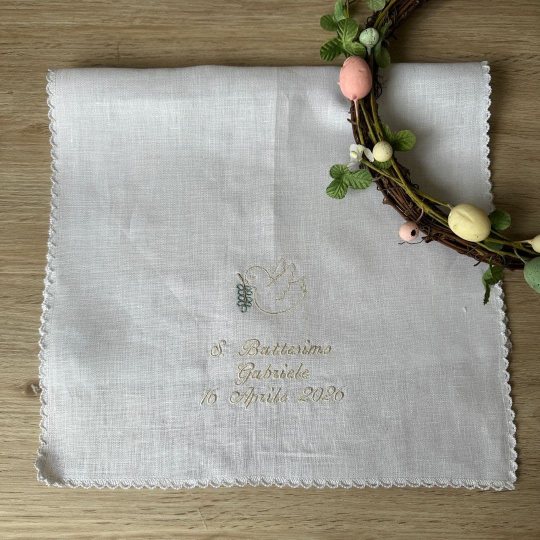 Realizzata in puro lino di alta qualità, la Lavetta Battesimo fa parte del nostro set coordinato, abbinabile alla Vestina e alla Busta Battesimo personalizzata, perfetta per conservare con cura ogni dettaglio della cerimonia. Ogni pezzo è creato con passione nel nostro laboratorio artigianale, dove da oltre 50 anni le nostre ricamatrici danno vita a prodotti unici per la nascita e i momenti speciali della crescita.