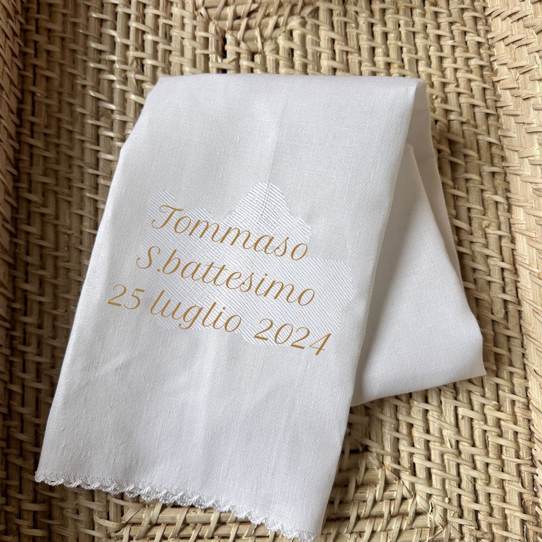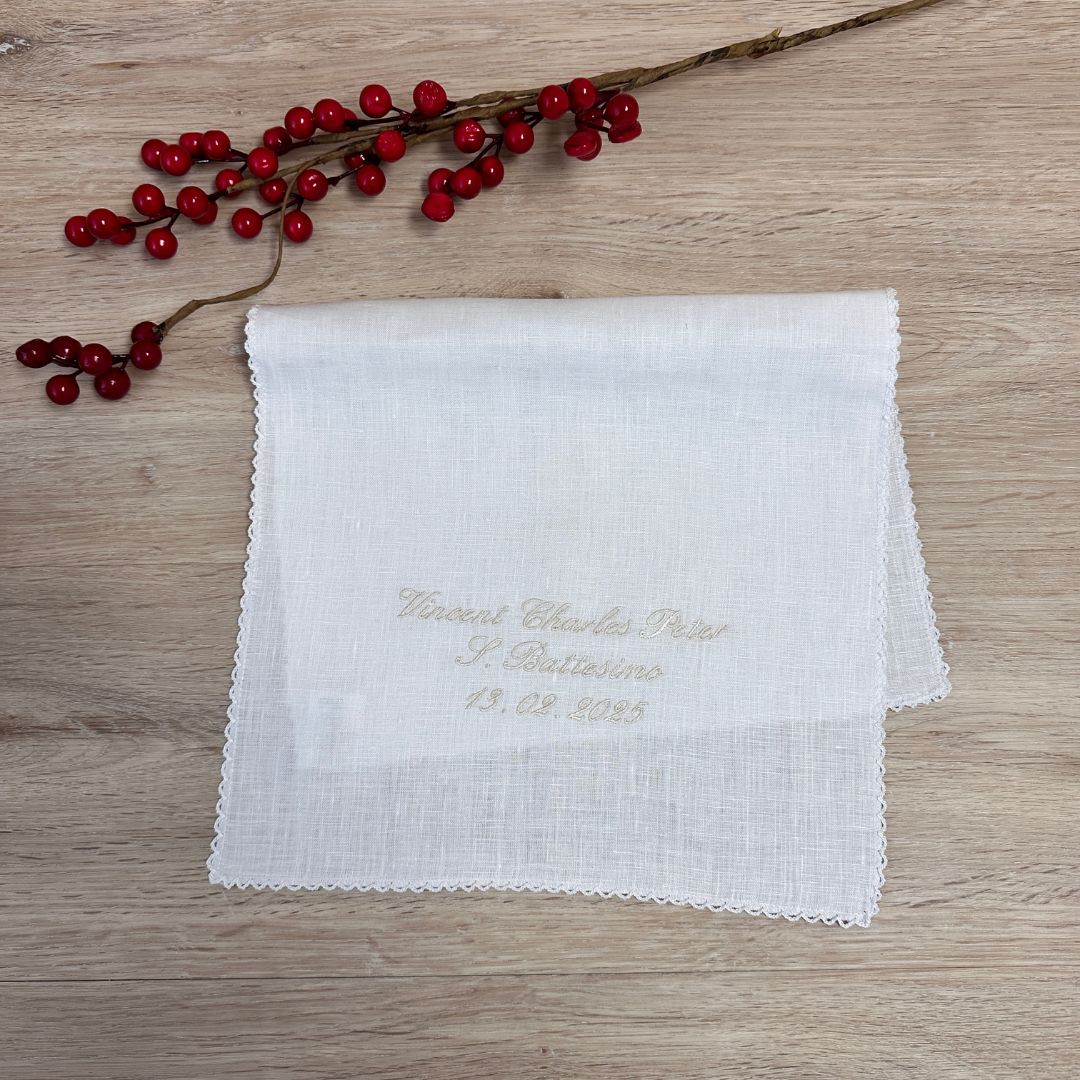 Aggiungi un tocco di grazia e tradizione al giorno del battesimo con la Lavetta personalizzata in puro lino di Coccole Store, realizzata artigianalmente per custodire con amore uno dei momenti più significativi della cerimonia.