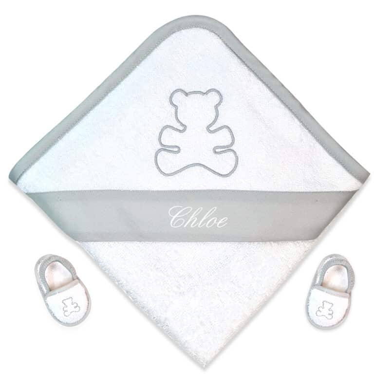 L’Accappatoio Neonato Personalizzato Orsetto con ciabattine è un’idea regalo elegante e funzionale, pensata per coccolare con dolcezza il tuo bambino fin dai primi giorni. Realizzato in soffice spugna di cotone, è abbinato a simpatiche ciabattine coordinate e presentato in un’elegante scatola color avana firmata Coccole Store.