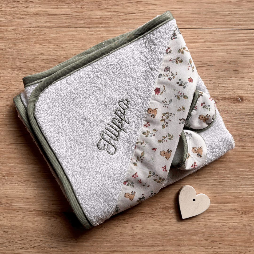 Set Bagnetto Personalizzato “Orsetto nel Bosco” – Dolci coccole dopo il bagnetto