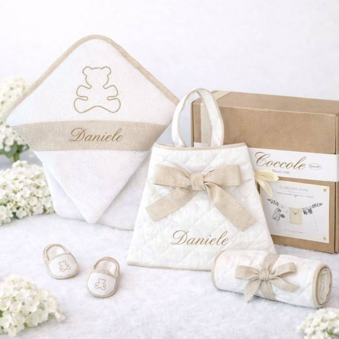 Il Corredino Personalizzato Bagnetto Orsetto è pensato per trasformare il momento del bagnetto in un rituale di dolcezza e comfort. Realizzato con materiali di altissima qualità, è ideale come dono raffinato o per coccolare il tuo bimbo con prodotti sicuri e sartoriali.