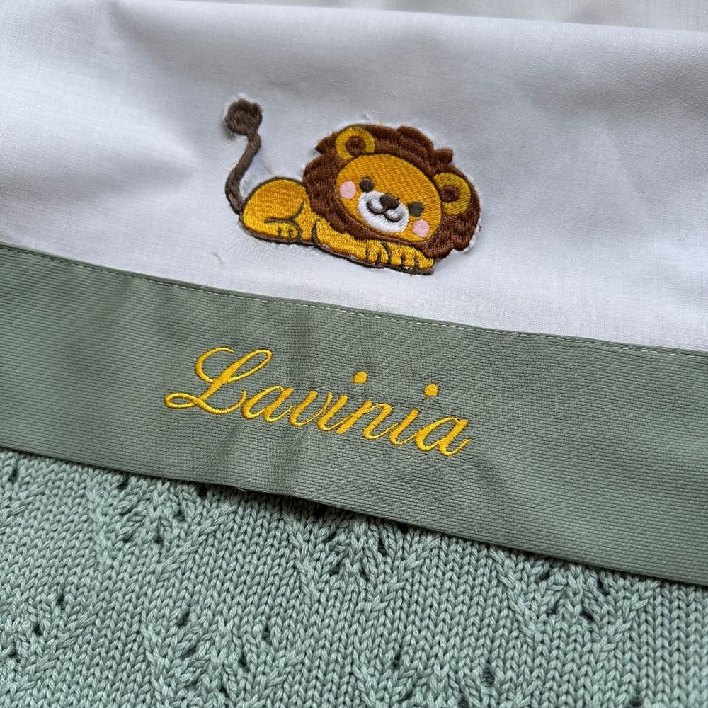 Scopri la dolcezza del riposo con il Lenzuolino neonato personalizzato per culla con il ricamo del dolce leoncino, un prodotto raffinato e curato nei minimi dettagli, perfetto per accogliere il tuo piccolo nei suoi primi sogni. Confezionato nella nostra elegante scatola regalo Coccole.