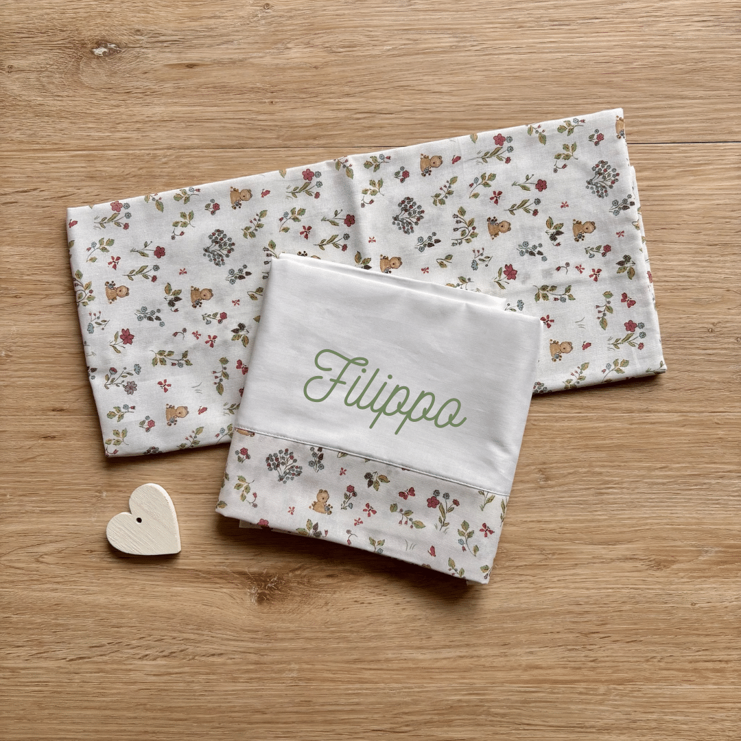 Set Lenzuolino Culla Personalizzato “Orsetto nel Bosco” – Per una nanna dolce e avvolgente