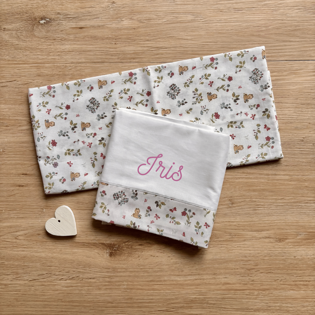 – Lenzuolo sopra personalizzabile con il nome del bambino o della bambina