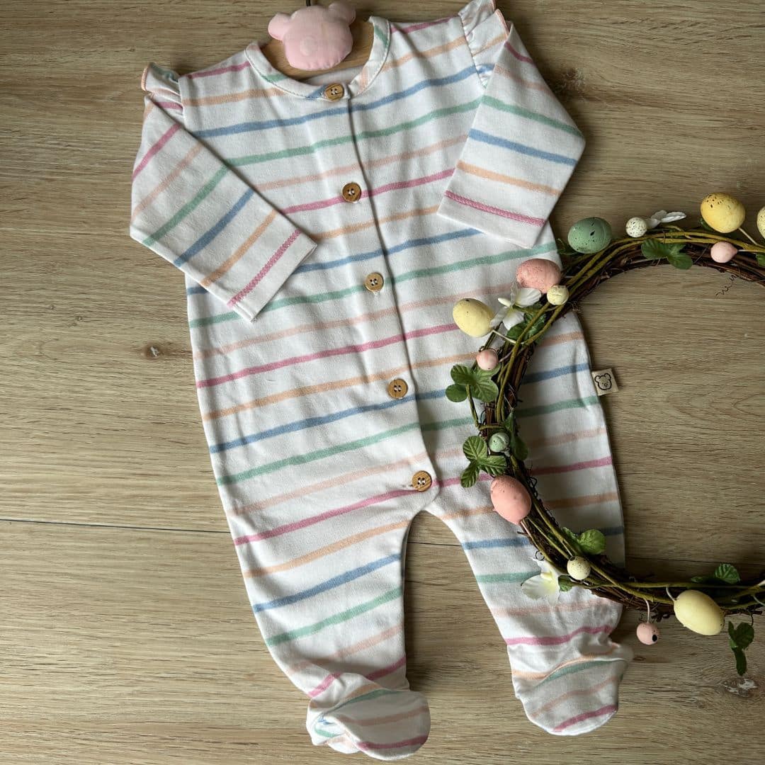 Tutina personalizzata arcobaleno Coccodè Le tutine di Coccodè sono perfette per il suo primo corredino primavera/estate, la tutina arcobaleno è carinissima, proposta in cotone leggero e morbido in questa bellissima fantasia rigata multicolor, allegra e tenera . La tutina è senza colletto, con i bottoncini color legno e i volantini nel giro spalla , che le danno un’aria tenera e romantica. La tutina può essere personalizzata con il suo nome. L’apertura davanti e nel giro gamba rendono la tutina pratica per il momento del cambio. La linea 0/24 di Coccodè Firenze è un marchio Made in Italy sinonimo indiscusso di qualità dei materiali e cura per il particolare. Se vi è piaciuta la tutina, nel sito troverete altri capi di questa deliziosa linea. Per completare l’outfit, sul nostro sito, sono disponibili tante altre idee per il suo primo corredino , come: i golfini, le calzine o i pagliaccetti corti , ideale per la sua prima estate .