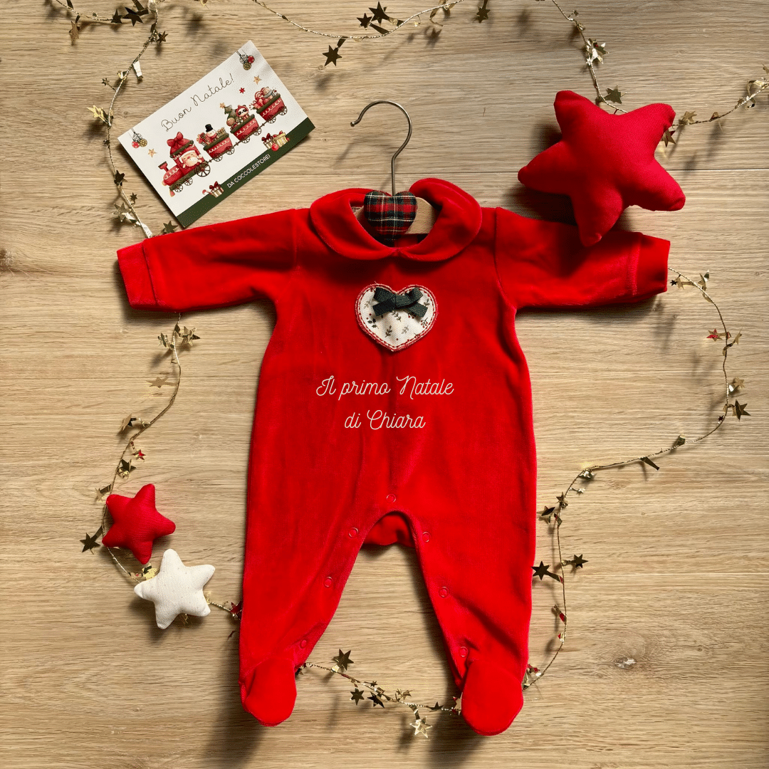 Un dolce abbraccio natalizio per i primi momenti speciali. La nostra tutina in ciniglia rossa personalizzabile è pensata per avvolgere il tuo bimbo nella morbidezza e nella magia del Natale. Realizzata con materiali sicuri e delicati sulla pelle, è impreziosita da un’applicazione a forma di cuore con motivo agrifoglio e fiocchetto tartan, simbolo di festa e tradizione.