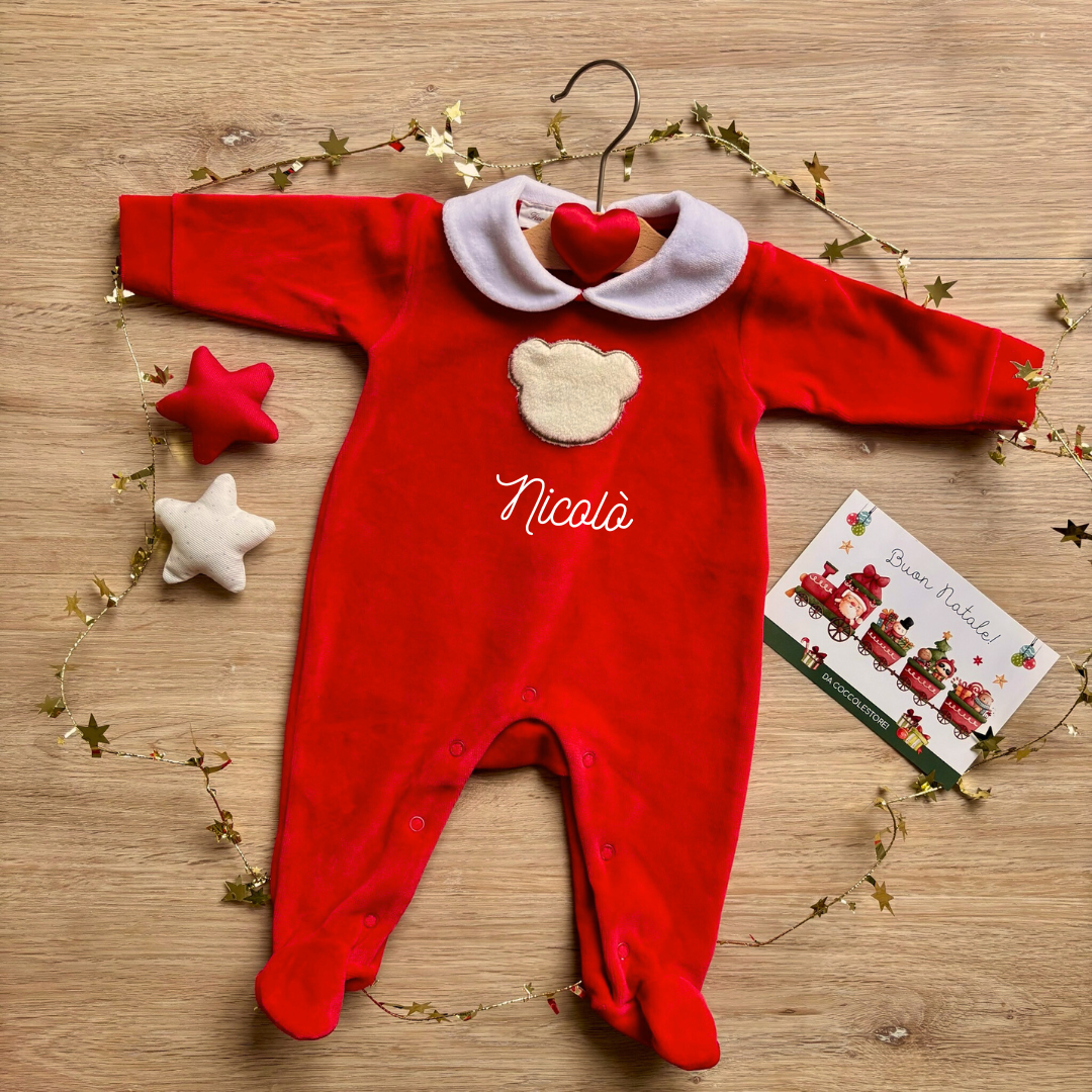 Prepara il tuo bimbo/a al primo Natale con una tutina dolce, calda e indimenticabile. Realizzata in morbida ciniglia, questa tutina avvolge il piccolo in un abbraccio soffice e confortevole, perfetto per le giornate invernali.