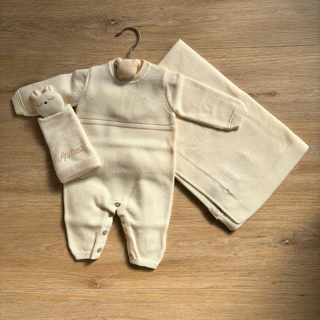 Set regalo nascita personalizzato in pura lana dou dou, tutina e coperta